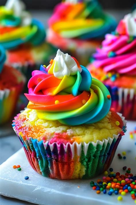 Unleash Your Sweet Tooth with Colorful Cupcakes: Experience the Rainbow!